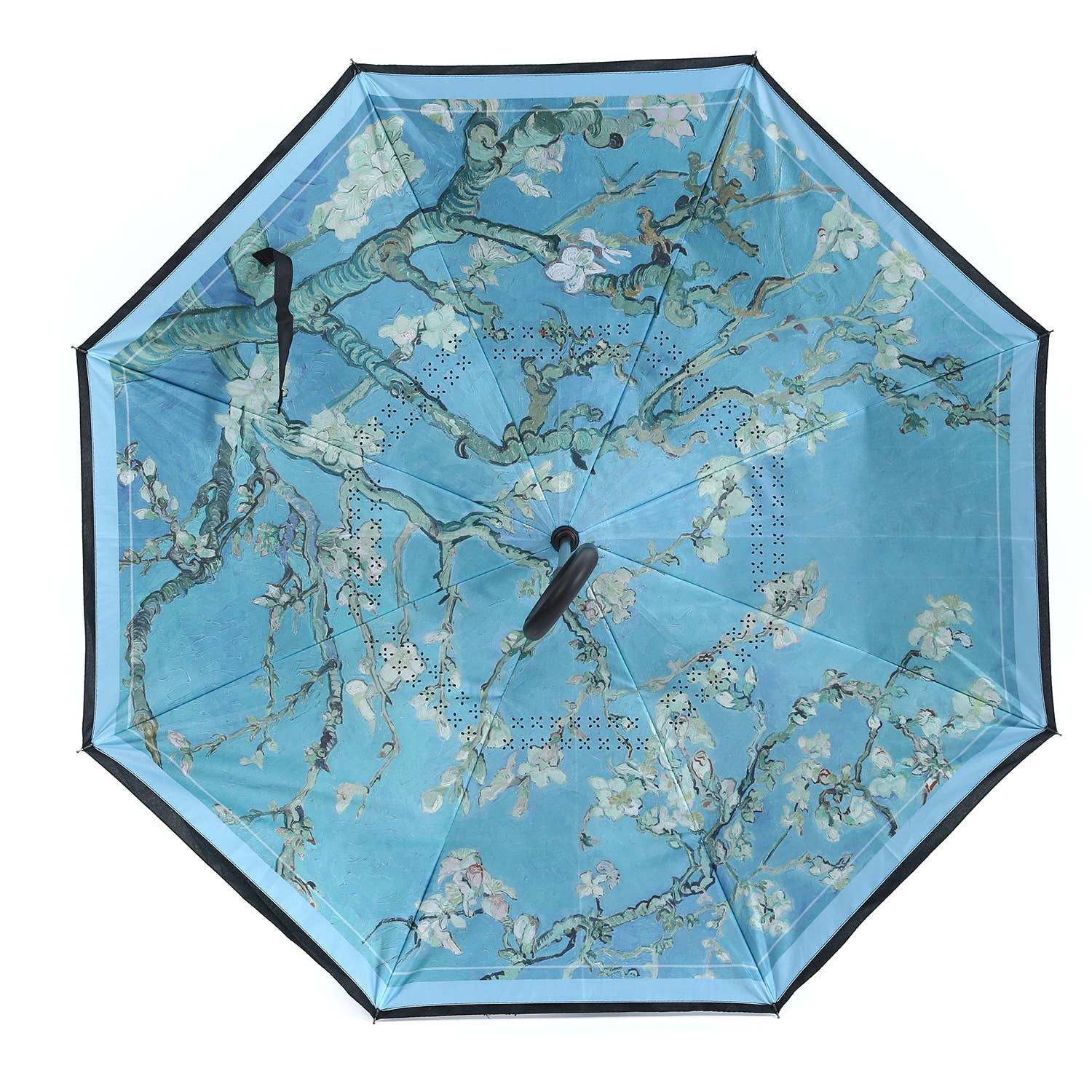 Carry a masterpiece wherever you go with this stunning folding umbrella featuring Vincent van Gogh's iconic "Almond Blossom" painting.
