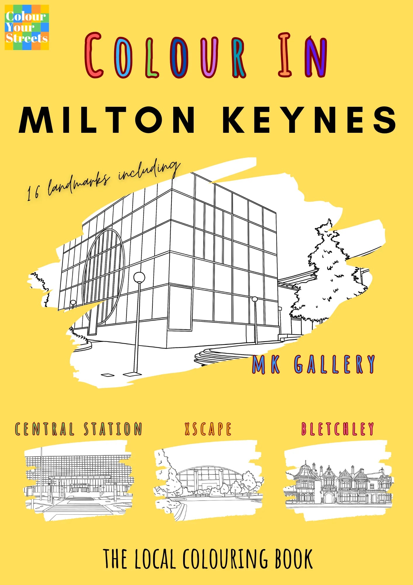Colouring in book of pictures of Milton Keynes landmarks, 16 pages