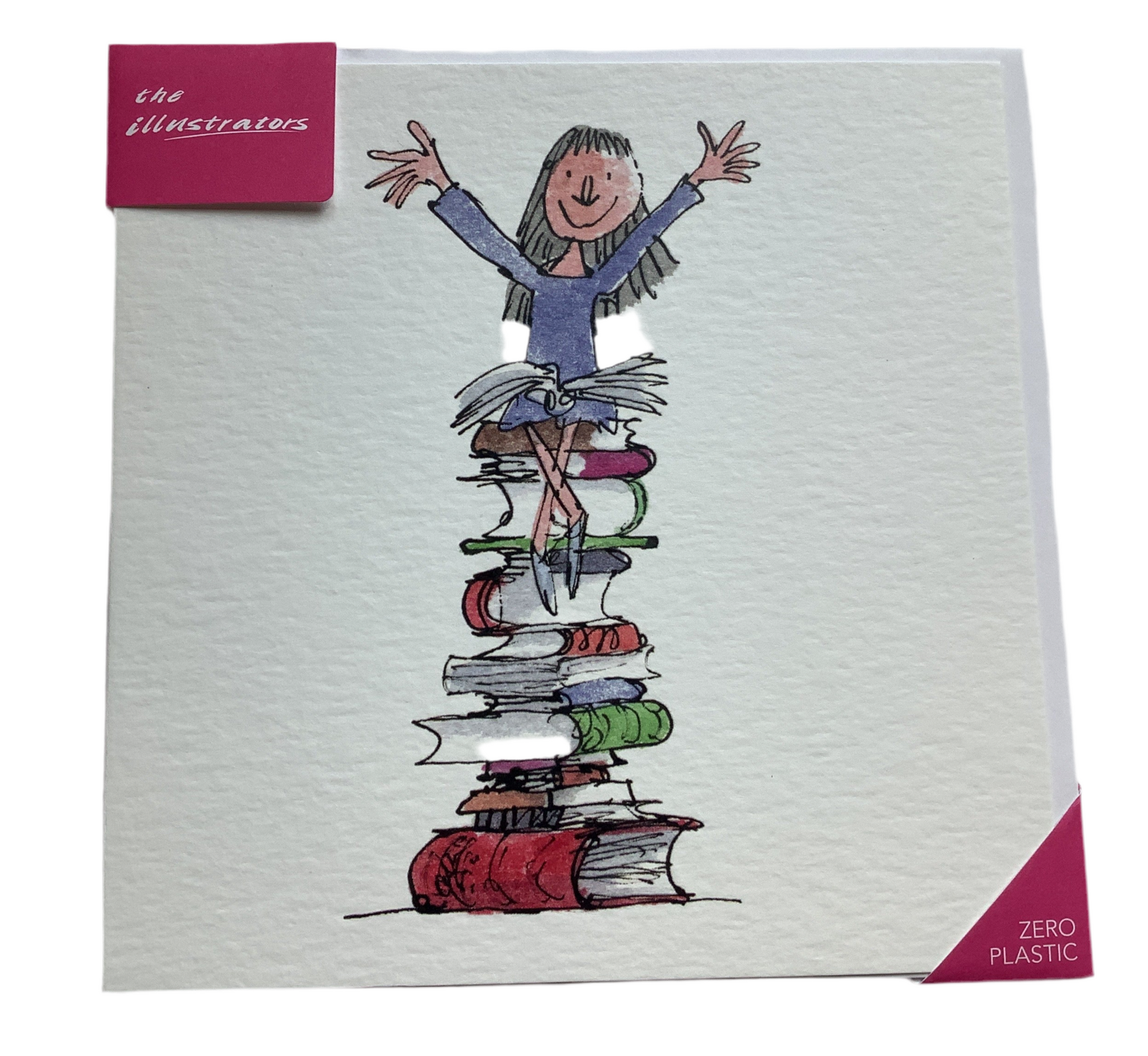 Delightful illustration by Quentin Blake, black inside for your own message, zero plastic packaging.