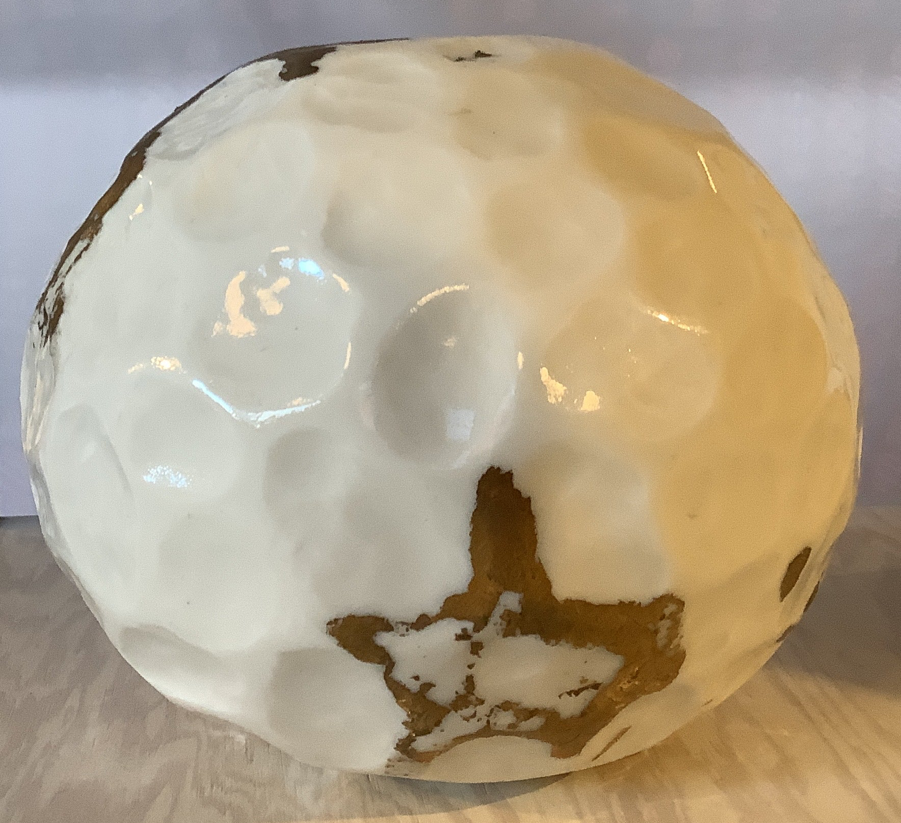 White porcelain ball shaped textured vase, decorated with gold leaf(approximately 12cms high) ideal for dried or fresh flowers.